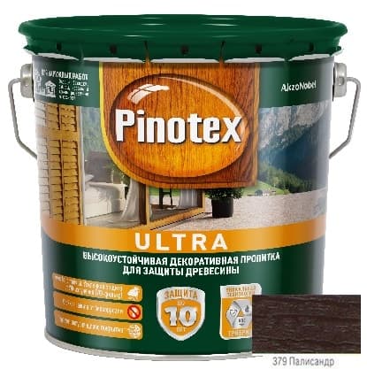 Высокоэффективная декоративно-защитная пропитка Pinotex Ultra Палисандр 2,7 л, для древесины на основе технологии AWB с добавлением УФ-фильтра. Благодаря УФ-фильтру окрашенная поверхность обладает дополнительной устойчивостью к воздействию солнца, дождя, снега, мороза. Легко наносится и быстро впитывается в поверхность древесины, образуя полуглянцевую пленку.