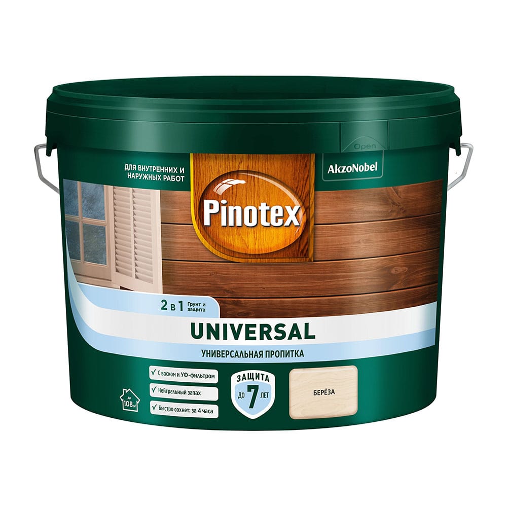 Пропитка 2 в 1 Pinotex UNIVERSAL береза - универсальная пропитка на водной основе для защиты древесины на срок до 7 лет*. Для обработки древесины снаружи и внутри помещений. Формула 2 в 1.
