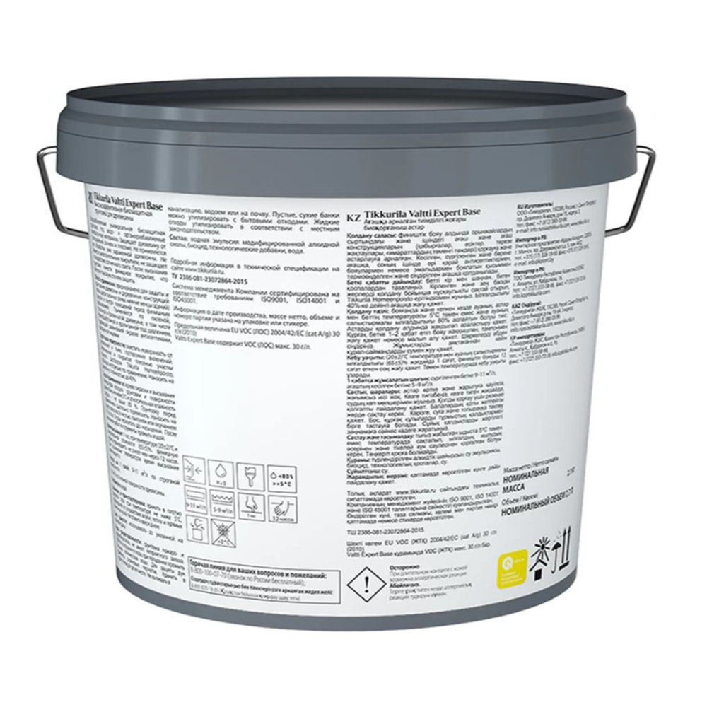 Грунт-антисептик для дерева 2,7 л Tikkurila/Tikkivala Valtti Expert Base - водоразбавляемая универсальная биозащитная грунтовка под водо- и органоразбавляемые лакокрасочные материалы. Защищает древесину от биопоражений (синевы и плесени). Не применяется для обработки уже зараженной древесины. Не является самостоятельным покрытием, не защищает от воздействия солнечного света. После высыхания грунтовка необходимо нанести финишное покрытие, что обеспечит высокую степень защиты. Предназначена для защиты и грунтовая древесины и деревянных конструкций (стены, двери, оконные рамы, нижние венцы зданий) снаружи и внутри помещений перед финишным окрашиванием. Применяется по пиленой, строганной и бревенчатой древесине, в том числе термообработанной и пропитанной под давлением, подлежащей дальнейшей окраске антисептиками, красками или эмалями.
