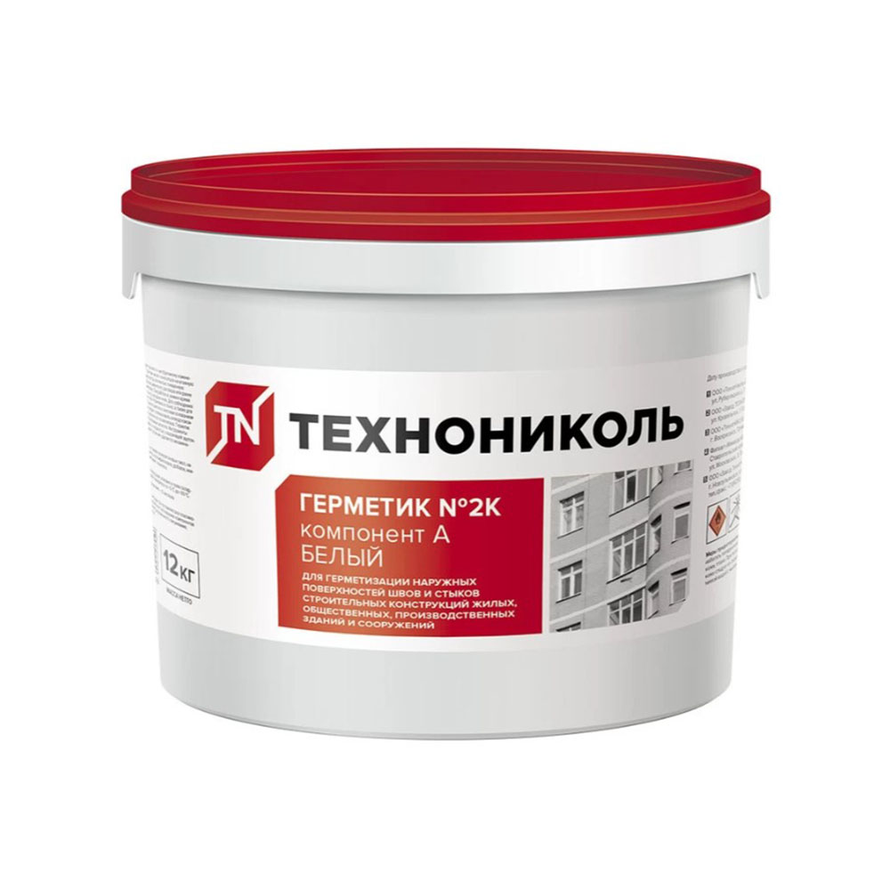 Герметик Белый ведро 12 кг ТЕХНОНИКОЛЬ 2К - двухкомпонентный полиуретановый герметик ТЕХНОНИКОЛЬ 2К предназначен для герметизации межпанельных стыков, щелей, трещин при строительстве и ремонте всех типов зданий и сооружений гражданского и промышленного назначения, в том числе морских гидротехнических, дорожных и прочих конструкциях. Выпускается двух цветов – белый и серый. После смешивания отверждается в результате химической реакции компонентов. Обладает широким диапазоном рабочих температур (от минус 60 °С до плюс 70 °С), высокой эластичностью, устойчивостью к ультрафиолету.