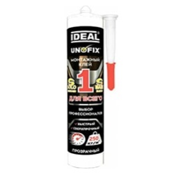 Монтажный клей IDEAL УноФикс Соло-250 - это универсальный прозрачный монтажный клей на базе синтетического каучука для внутренних и наружных работ. Полностью готов к применению. Устойчив к УФ-лучам, щелочам. Эластичен, не вспенивается. Проявляет высокую адгезию к большинству строительных материалов (металл, камень, кирпич, бетон, дерево, ПВХ, гипсокартон и т.д.). После отверждения образует прочный и прозрачный шов.