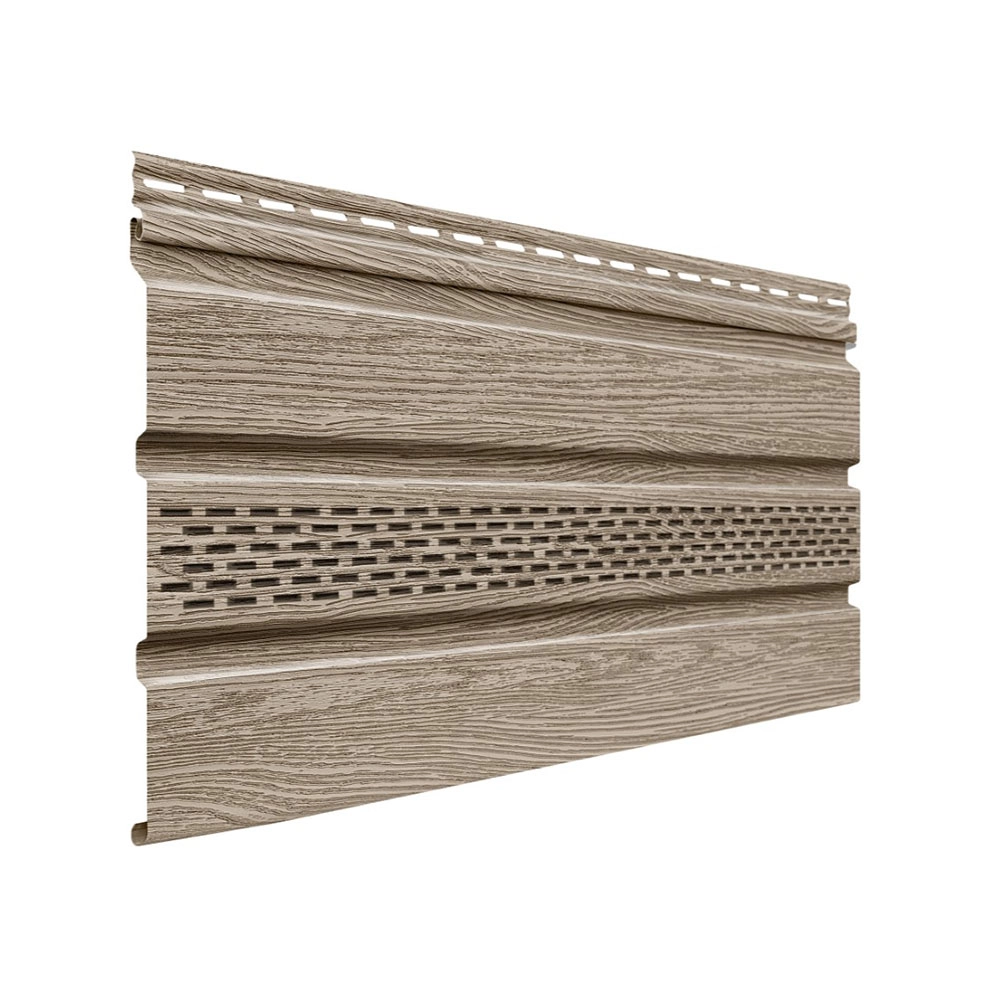 Софит частично перфорированный Фактур Кедр 3000х308 мм Технониколь, обеспечивает необходимый забор воздуха в подкровельное пространство, защищает его от порывов ветра, попадания снега, дождя, листьев. Предотвращает проникновение под кровлю насекомых и птиц, используется для подшивки карнизных свесов.