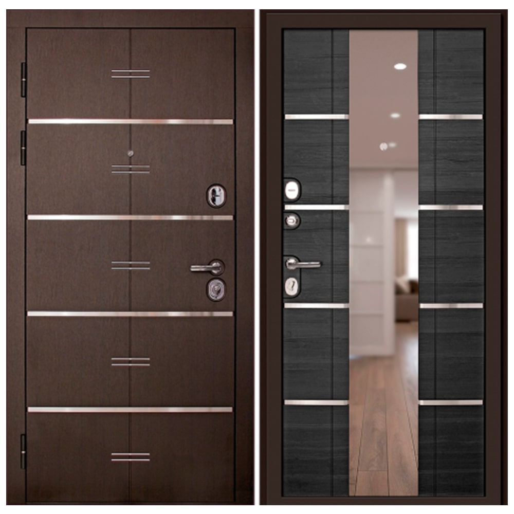 Панель МДФ - Две панели. Внешняя 10 мм. с хромированными молдингами. Внутренняя 16 мм. с хромированными молдингами и зеркалом.