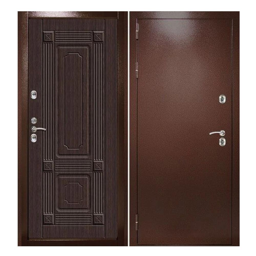 Дверная рама: Изготовлена из цельногнутой конструкции. По контуру самой двери и короба имеется уплотнитель трубчатого типа. В данной модели 3 контура уплотнения. Также, дверной порог уже приварен к раме. Но самое важное - дверная коробка и дверное полотно двери состоят из двух конструкций, разделенных между собой специальным слоем пробковой термоизоляции. Такой конструктив называется терморазрывом, т.к. наружная и внутренняя коробки между собой не соприкасаются, внутренняя коробка имеет температуру помещения, и как результат, она не промерзает и на ней не работает точка росы. Дверные петли: Дверь Дверной Континент Термаль Ультра Венге имеет 3 наружные петли на подшипниках. Они плавно располагают нагрузку, это обеспечит долговечность открывания/закрывания дверей. Полотно двери: Выполненного из холоднокатаной стали с использованием 1 листа металла 1,5 мм. В конструкцию входят ребра жесткости, обеспечивая жесткость корпусу. В зоне замков используют второй лист металла. Для придания двери высокой тепло и шумоизоляции, в дверь уложена базальтовая плита плотностью 100 кг/м.куб. + жесткий пенополистирол.. Они придают двери очень высокую тепло и шумоизоляцию. Но самое главное - наружный контур металла дверного полотна никак не соприкасается с внутренним контуром дверного полотна - понятие терморазрыва. Такой конструктив позволяет не охлаждаться внутреннему контуру двери и на нем не будет инея или конденсата при высокой разнице температуры на улице и в помещении в зимнее время. Толщина изделия - 100 миллиметра. Открывание 180 градусов. Внешняя поверхность окрашена атмосферостойким покрытием в цвете Медный антик тёмный. Внутри установлена влагостойкая фрезерованная МДФ панель 12 мм., в цвете Венге. В данной модели двери отсутствует глазок!