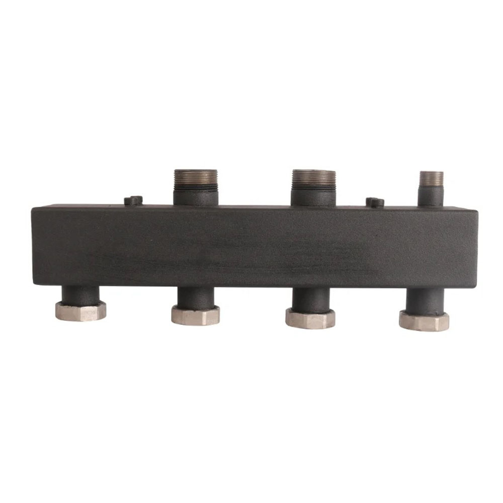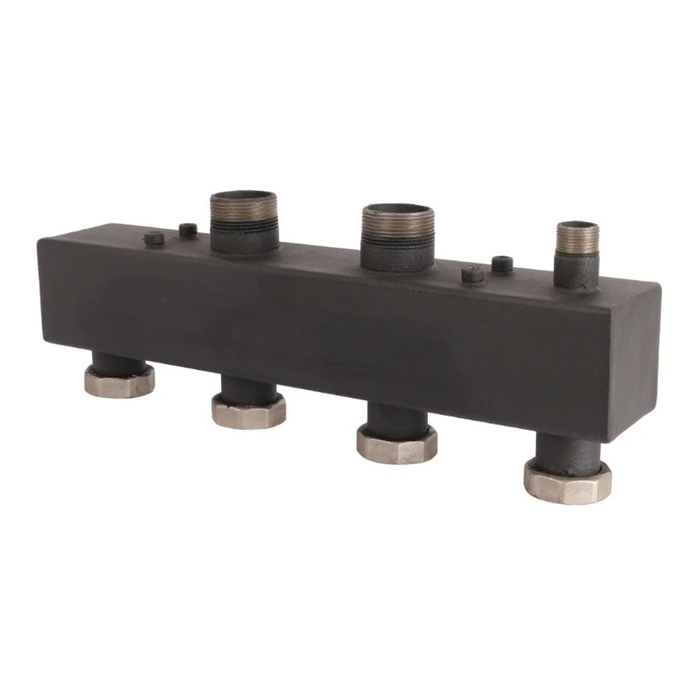Коллектор распределительный 2 отопительных контура 1 1/2' Rommer - это стальной распределительный коллектор для систем водяного отопления с двумя отопительными контурами диаметром по 1 1/2 каждый. Он эффективно распределяет и контролирует температуру в системе для создания комфортной среды в помещениях.