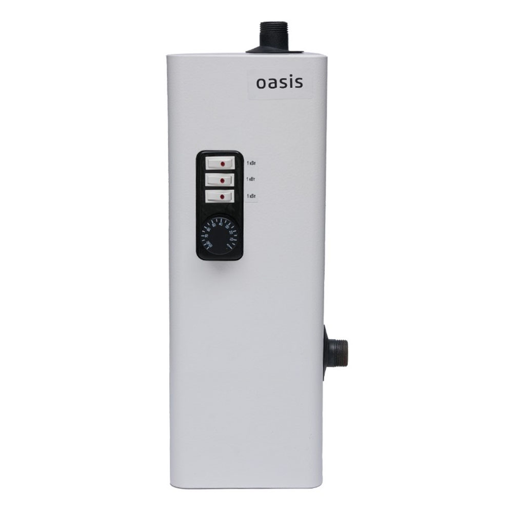 Котел электрический настенный 3 кВт OASIS KM-3 - для отопления магазинов, дач, частных домов, гаражей, складов, офисов электрический котел подходит идеально, являясь мощным, экологичным и недорогим прибором. За счёт своих компактных размеров электрокотел OASIS можно установить на кухне, в подвале, мансарде. Отличный выбор для установки в помещениях, не имеющих подключения к газовой системе и в дома, в которых отсутствует дымоход.