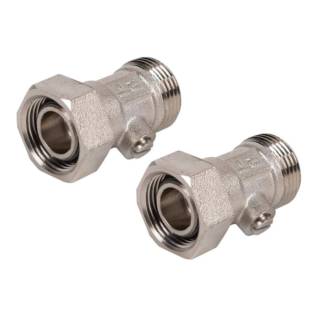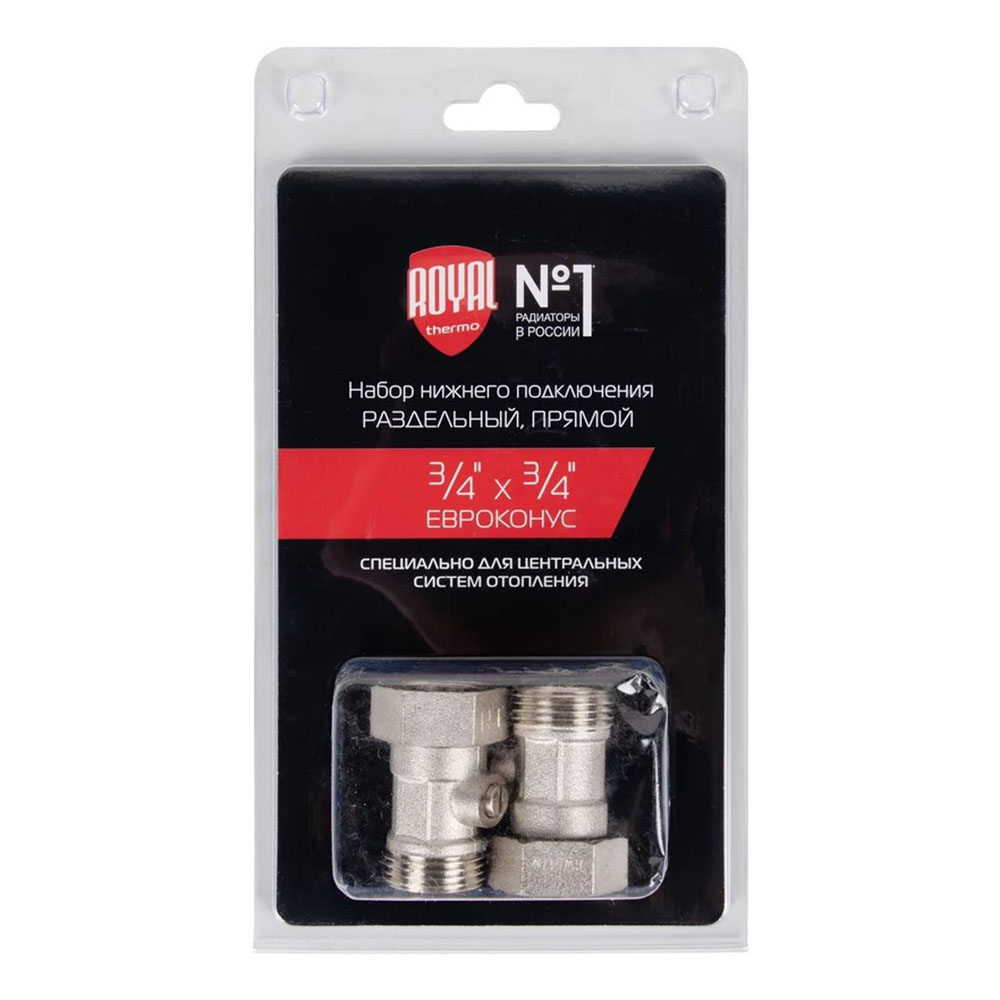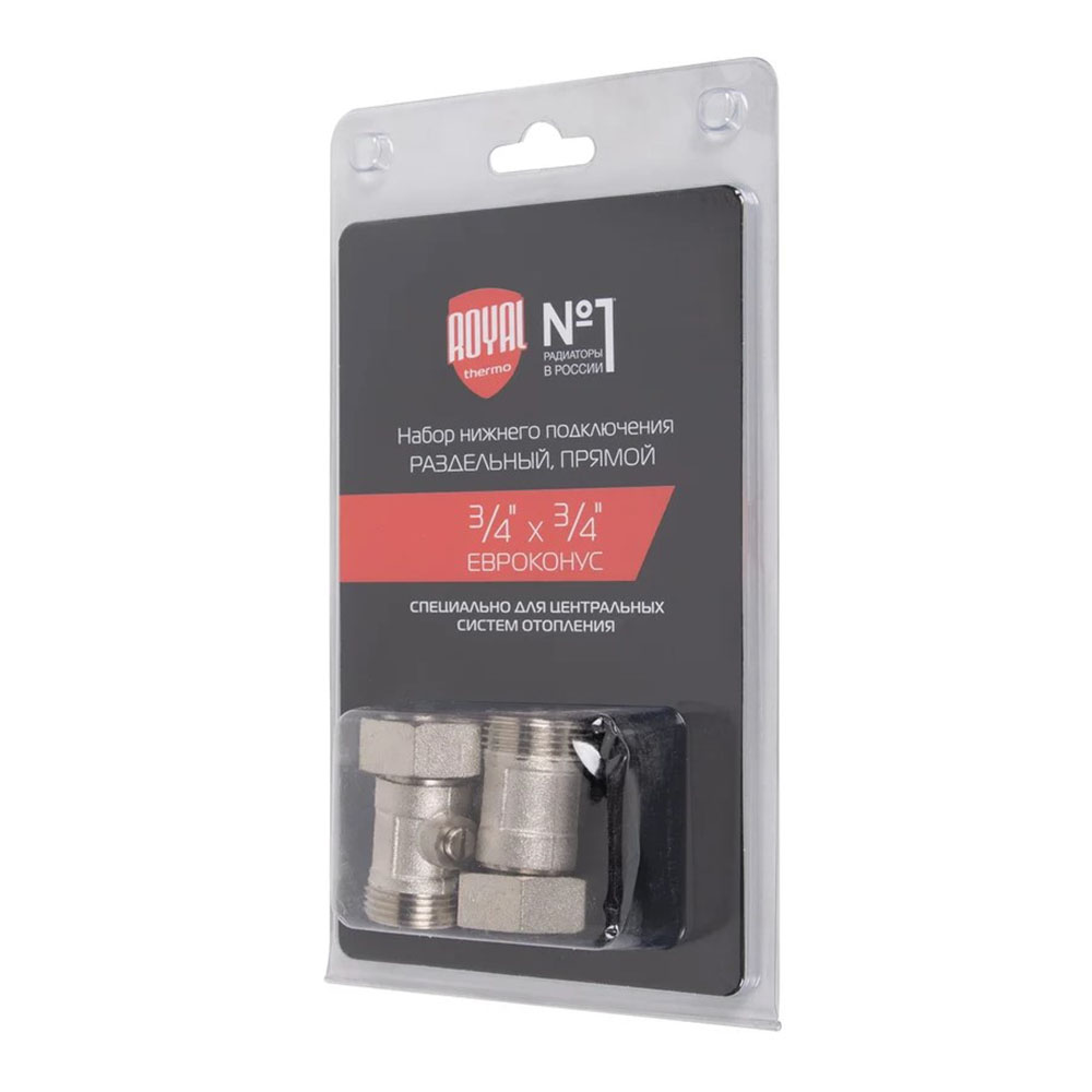 Узел нижнего подключения Набор прямой раздельный 3/4 х 3/4ЕК Royal Thermo - представляет собой ключевой элемент современной системы отопления, обеспечивающий эстетичное и функциональное подключение радиатора к трубопроводу. Данный набор, выполненный в прямой раздельной конфигурации с резьбовым соединением 3/4 дюйма, включает в себя пару узлов – для подачи и обратки теплоносителя – выполненных из высококачественной латуни с хромированным покрытием.