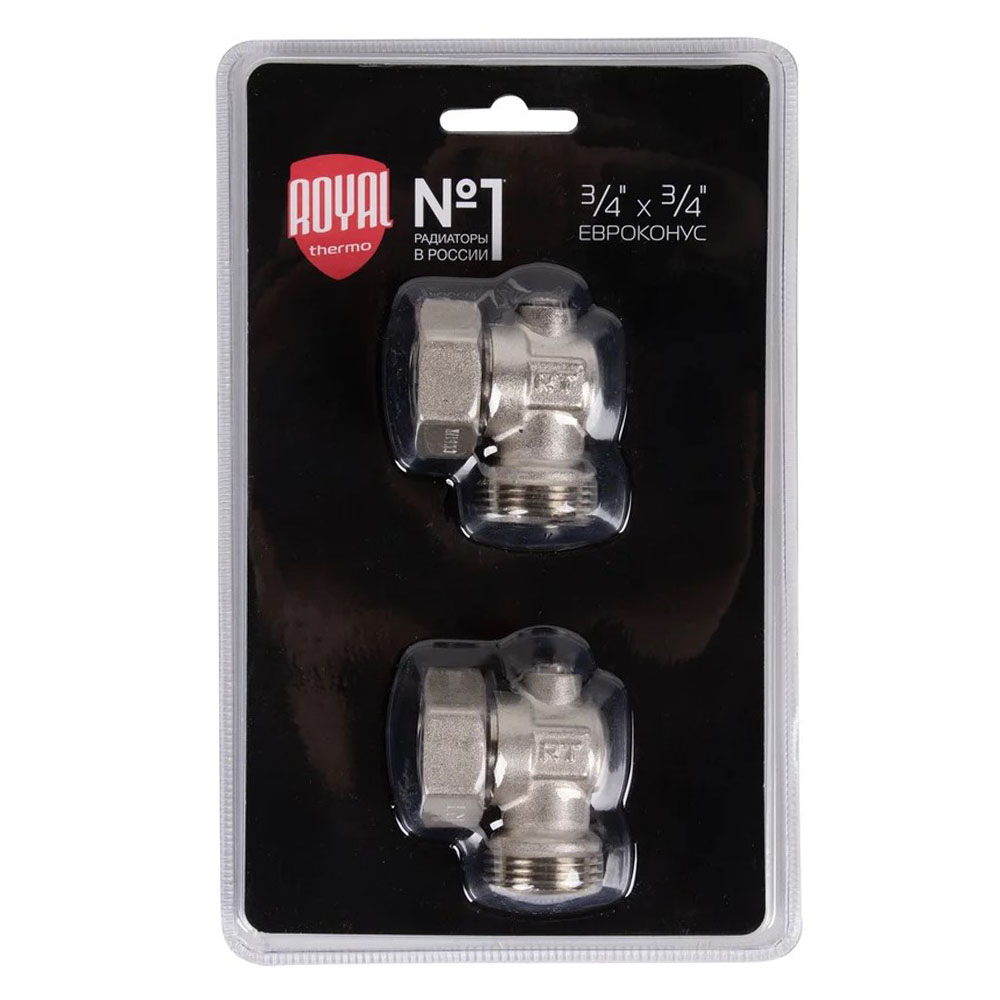Узел нижнего подключения Набор угловой раздельный 3/4 х 3/4ЕК Royal Thermo - этот набор предназначен для подключения секционных радиаторов отопления с нижним подключением. Он идеально подходит для систем отопления, где трубы проходят через пол. Набор рассчитан на использование в российских условиях эксплуатации и подходит для центральных систем отопления. Он идеально подходит для установки в жилых и коммерческих помещениях, обеспечивая надежное и удобное подключение радиаторов. Этот набор нижнего подключения обеспечивает простоту установки и долговечность в эксплуатации, соответствуя всем требованиям современных систем отопления.