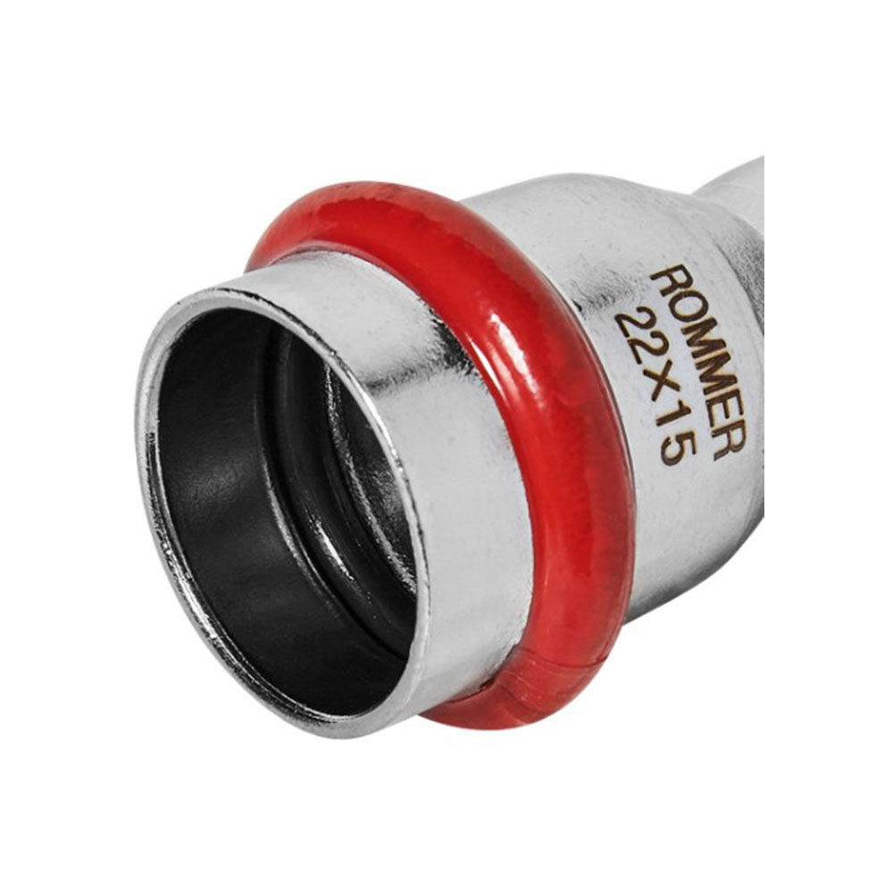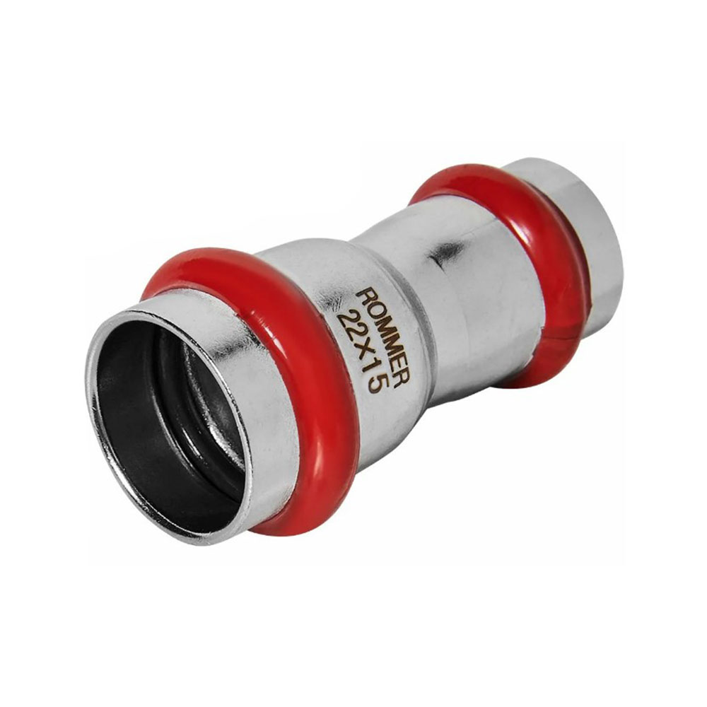Муфта переходная Впр-Впр Ø 22х15 Нержавеющая сталь пресс ROMMER - это переходная муфта, которая используется для соединения труб из нержавеющей стали диаметром 22 и 15 миллиметров. Она обеспечивает герметичное и прочное соединение, которое устойчиво к коррозии, высоким температурам и рабочему давлению. Эта муфта может использоваться в системах отопления, горячего и холодного водоснабжения, газовых системах и системах пожаротушения.
