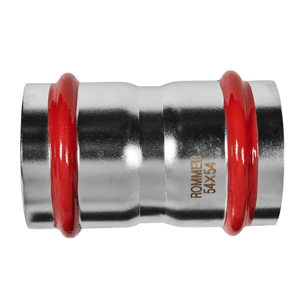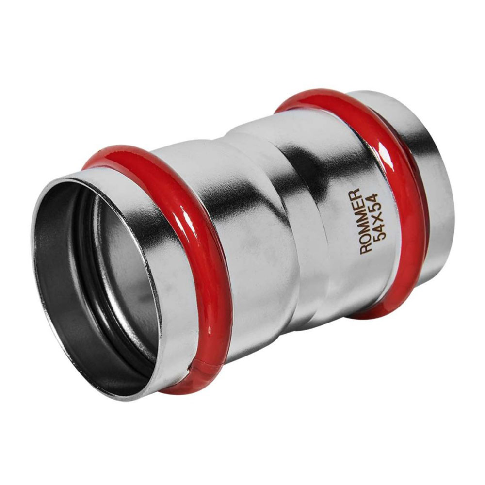 Муфта равнопроходная Впр-Впр Ø 54 Нержавеющая сталь пресс ROMMER - предназначенная для соединения труб диаметром 54 мм. Муфта обеспечивает прочное и надёжное соединение без использования уплотнителей, устойчива к коррозии, воздействию высоких температур и давлений. Применяется в системах отопления, горячего и холодного водоснабжения, газопроводах и системах пожаротушения.