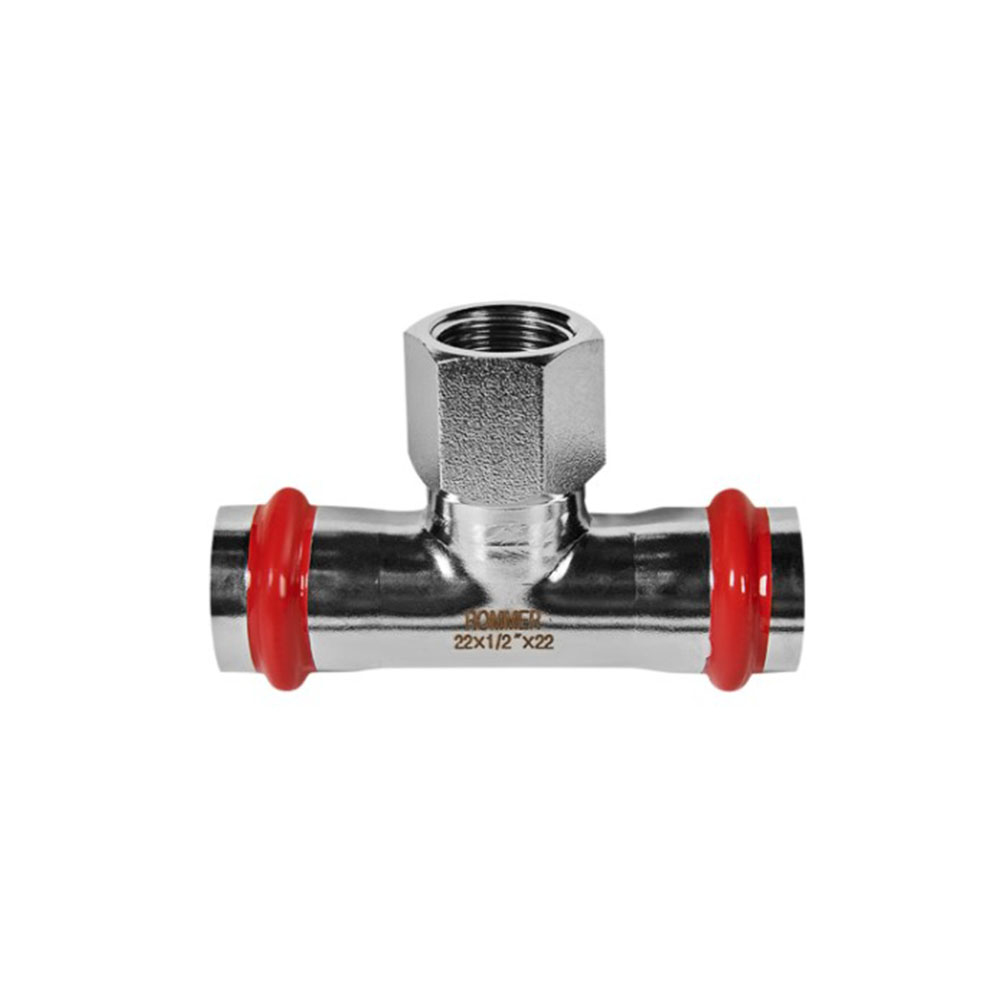 Тройник-переходник ВПр-ВР Ø 22х1/2"х22 Нержавеющая сталь пресс ROMMER - это тройник-переходник из нержавеющей стали с внутренней резьбой размером 22 мм и ½ дюйма. Применяется в отопительных и водных системах для подсоединения и разъединения труб. Изделие изготовлено из качественной нержавеющей стали, которая обеспечивает его высокую прочность и длительный срок службы. Устойчиво к коррозии, повышенным температурам и давлениям.