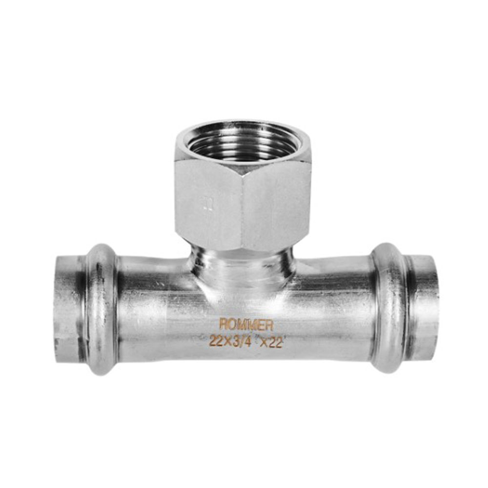 Тройник-переходник ВПр-ВР Ø 22х3/4"х22 Нержавеющая сталь пресс ROMMER - это тройник-переходник из нержавеющей стали AISI 304 с внутренней резьбой размерами 22 мм и ¾ дюйма. Используется для соединения и разводки труб в системах отопления и водоснабжения. Отличается высокой прочностью, надежностью и устойчивостью к коррозии, давлению и высокой температуре.