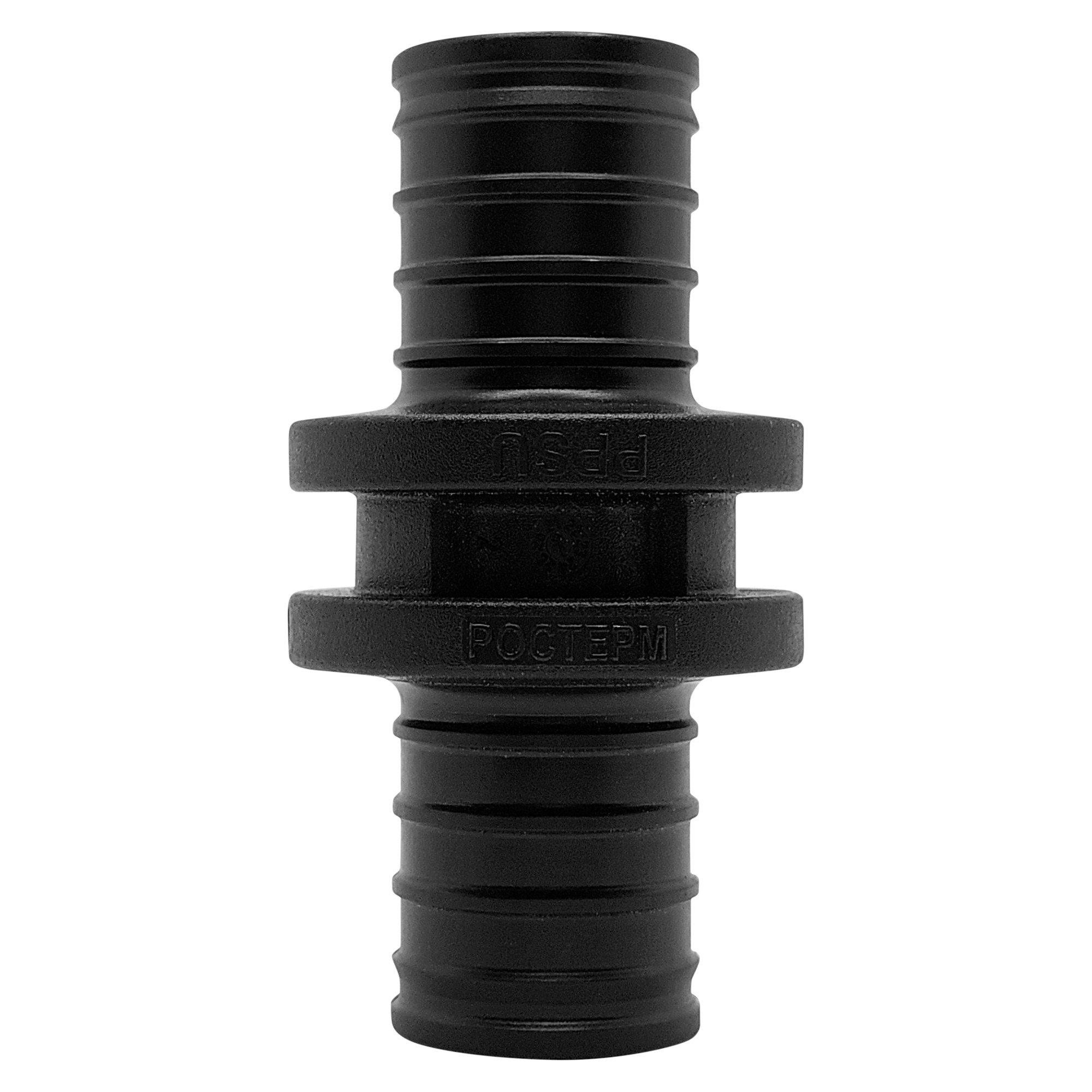 Муфта 16 PPSU РОСТерм, устанавливается в качестве соединения труб из сшитого полиэтилена 20 диаметра, совместно с напрессовочными гильзами PVDF соответствующего размера. Используется в аксиальной системе для соединения полимерных труб РЕ-Х и PE-RT.
