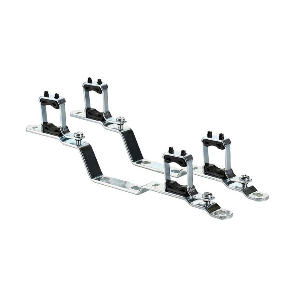 Кронштейн для коллекторов 500n-e и 560n-e 1' VTc.IV130.N.0600 VALTEC - изделия состоят из крепежной планки, выполненной из стальной анодированной полосы толщиной 3 мм, к которой винтами крепится пара стальных никелированных хомутов толщиной 1 мм. В хомуты вставлены пластиковые прокладки, служащие тепло- и виброзащитой и предохраняющие коллекторы от механических повреждений. Кронштейны обеспечивают разнос коллекторов по высоте на 200 мм (между осями) и на 32 мм по глубине.