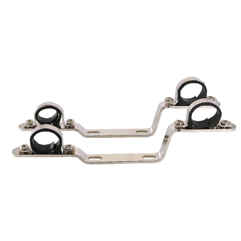 Пара кронштейнов для коллектора из нержавеющей стали 1' VALTEC - предназначены для крепления подающего и обратного коллекторов из нержавеющей стали VTc.582.EMNX, VTc.584.EMNX, VTc.588.EMNX, VTc.589.EMNX к несущей поверхности за шейки резьбовых патрубков. Состоят из крепежной планки, к которой винтами крепятся два стальных никелированных хомута. В хомуты вставлены пластиковые манжеты, служащие тепло- и виброзащитой и предохраняющие коллекторы от механических повреждений. Кронштейны обеспечивают разнос коллекторов по высоте на 200 мм (между осями) и на 32 мм по глубине.