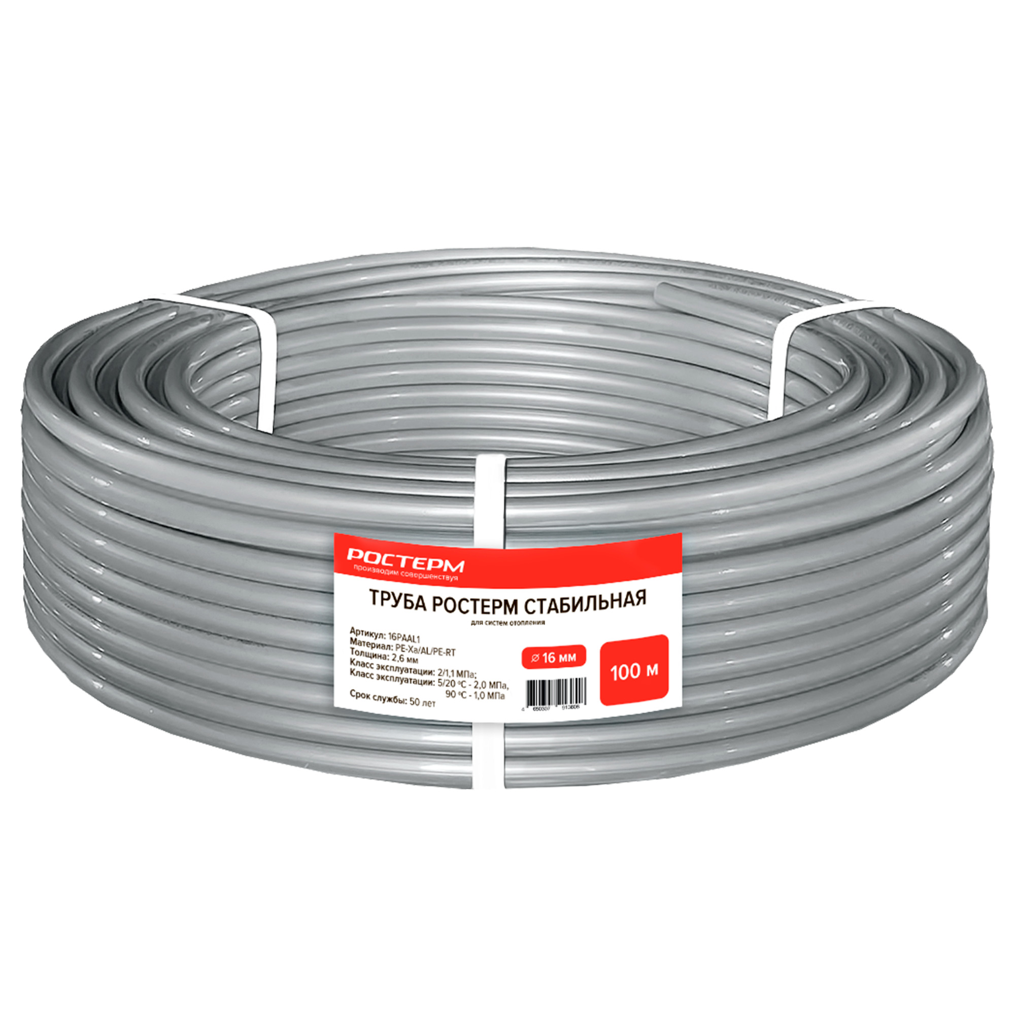 Труба PЕХ-а/AL/PERT 16х2,6 мм Универсальная STABIL РОСТерм — это универсальная труба, которая подходит как для высокотемпературного отопления, так и для системы водоснабжения, теплых полов.
