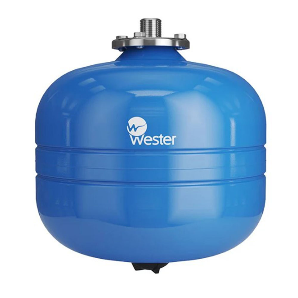 Гидроаккумулятор 12 л вертикальный Синий 3/4" WAV Wester - предназначен для поддержания рабочего давления, защиты от гидроударов и уменьшения количества включений-выключений насоса в системе водоснабжения, в том числе питьевого и для компенсации температурного расширения воды в системе горячего водоснабжения. Мембранные баки серии WAV предназначены для вертикальной установки, серии WAO для горизонтальной установки.