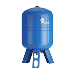 Гидроаккумулятор 50 л вертикальный Синий 1" WAV Wester - предназначен для поддержания рабочего давления, защиты от гидроударов и уменьшения количества включений-выключений насоса в системе водоснабжения, в том числе питьевого и для компенсации температурного расширения воды в системе горячего водоснабжения. Мембранные баки серии WAV предназначены для вертикальной установки, серии WAO для горизонтальной установки.