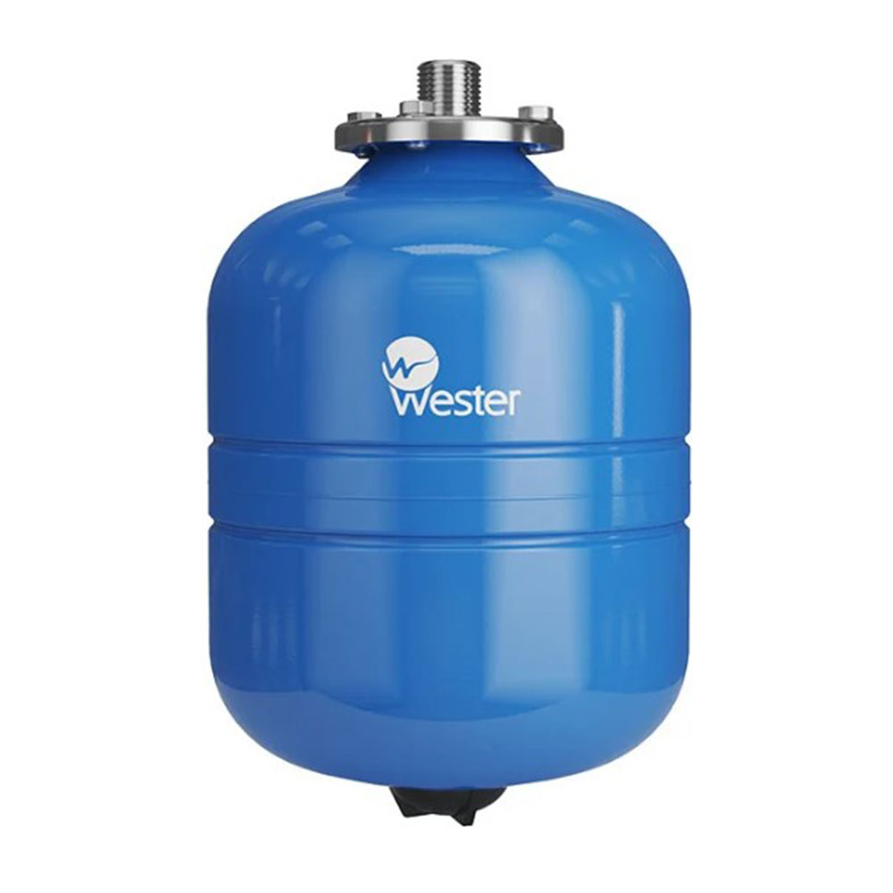 Гидроаккумулятор 8 л вертикальный Синий 3/4" WAV Wester - предназначен для поддержания рабочего давления, защиты от гидроударов и уменьшения количества включений-выключений насоса в системе водоснабжения, в том числе питьевого и для компенсации температурного расширения воды в системе горячего водоснабжения. Мембранные баки серии WAV предназначены для вертикальной установки, серии WAO для горизонтальной установки.