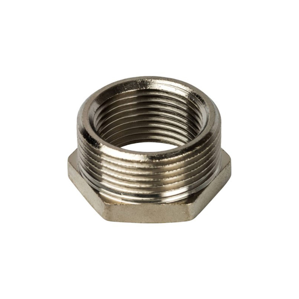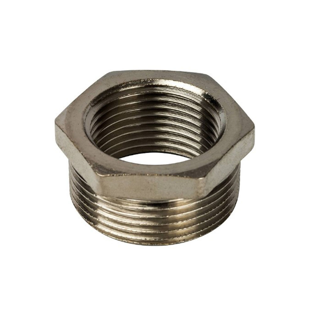Футорка НВ 1"1/2х1"1/4 никелированная STOUT - предназначена для перехода с наружной на внутреннюю резьбу в системах водоснабжения и отопления. Имеет один выход с наружной резьбой, другой с внутренней.