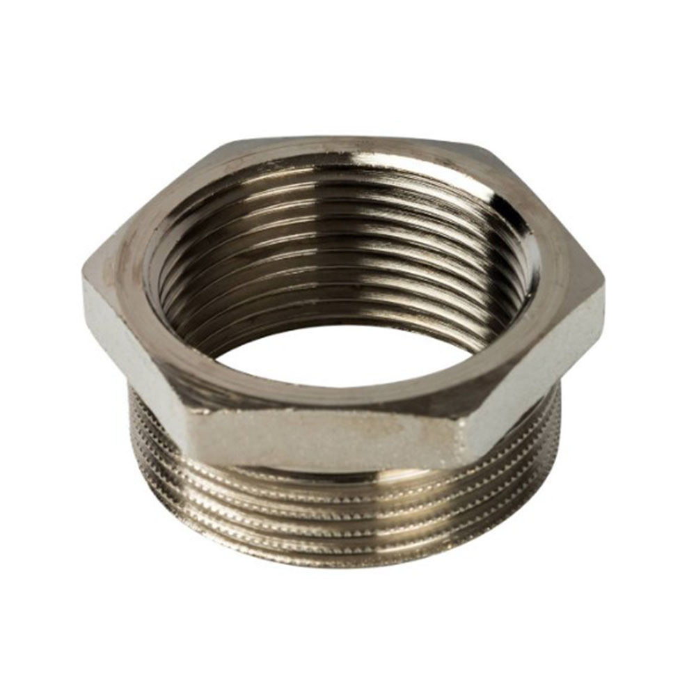 Футорка НВ 1"1/4х1" никелированная STOUT - подходит в качестве простого и надежного переходника между различными типами резьбы на трубе. Благодаря дополнительному защитному слою латунь надежно изолирована от попадания влаги снаружи.