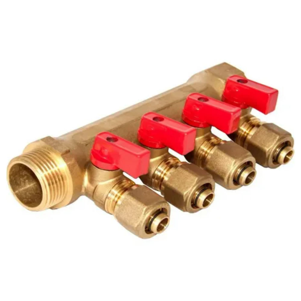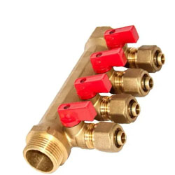 Коллектор с краном Миллениум 3/4 - 4 выхода предназначен для распределения потока транспортируемой среды по потребителям. При этом под «потребителем» понимается отдельный прибор или группа приборов, контур или петля «теплого пола», отдельные части или ветви системы. Коллекторы могут использоваться на трубопроводах систем холодного (в том числе питьевого) и горячего водоснабжения, отопления, сжатого воздуха, а также на технологических трубопроводах, транспортирующих жидкости, не агрессивные к материалам элементов коллекторных систем.