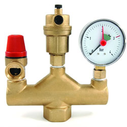 Обеспечивает безаварийную работу систем горячего водоснабжения и отопления, защиту их элементов от превышения безопасного давления, нарушения циркуляции теплоносителя, нештатных режимов эксплуатации обеспечивает набор из арматуры, контрольно-измерительных приборов, расширительного бака. Применительно к индивидуальным инженерным системам комплект включает в себя воздухоотводчик, предохранительный клапан, манометр. Объединение в компактные группы безопасности облегчает комплектование, монтаж, обслуживание оборудования.