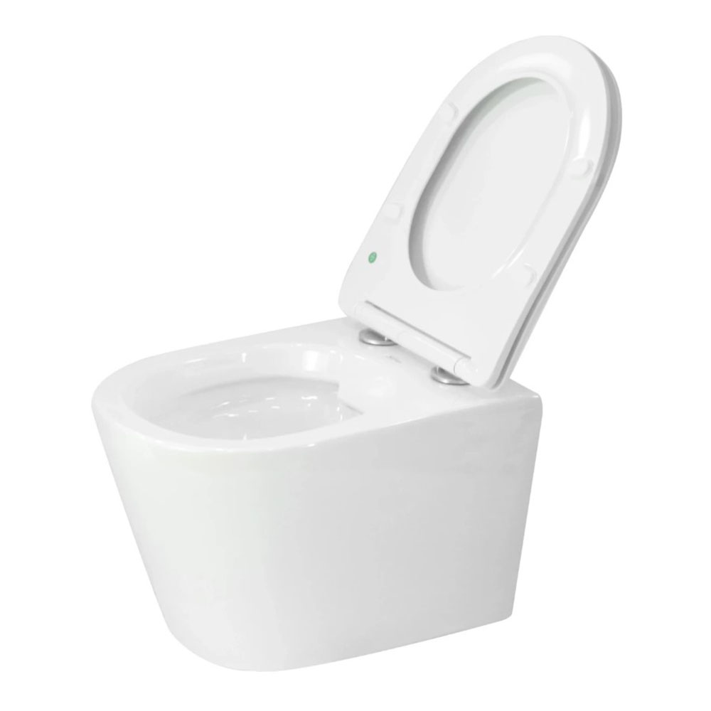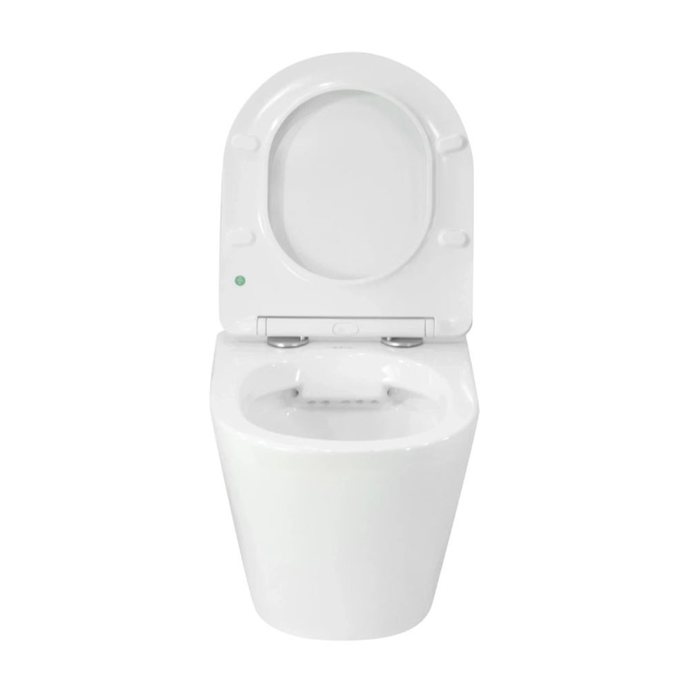 Унитаз подвесной горизонтальный выпуск сиденье дюропласт микролифт Белый Circulo Rimless Selena - с открытой безободковой чашей имеет глубокий смыв, поставляется с крепежом для полностью скрытого монтажа, укомплектован ультра тонким с сидением и крышкой с функцией плавного закрытия Soft Close.