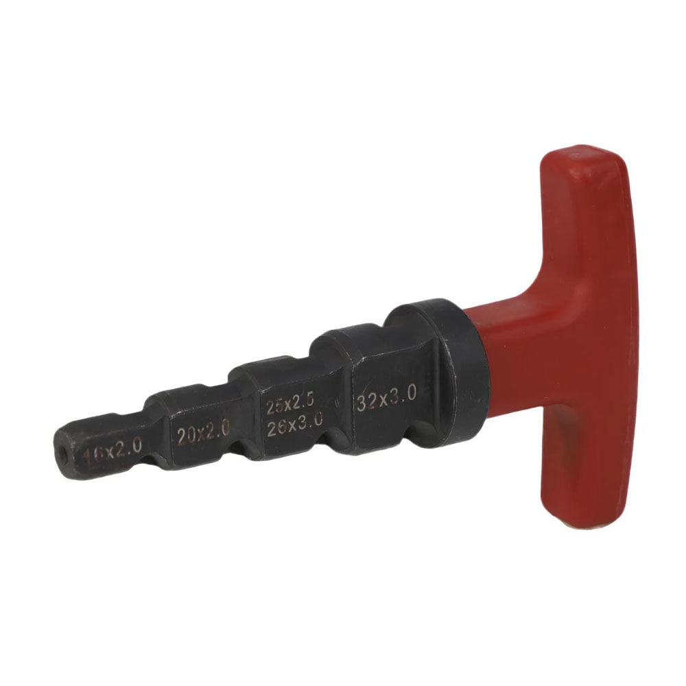 Калибратор для металлопластиковых труб 6017 16-32 мм Aquasfera - это инструмент для обработки торцов трубных изделий после обрезки, который обеспечивает подгонку элементов для максимально герметичной стыковки с фитингами. Таким образом, основные функции калибратора: Удаление заусениц, которые образовались в процессе резки.