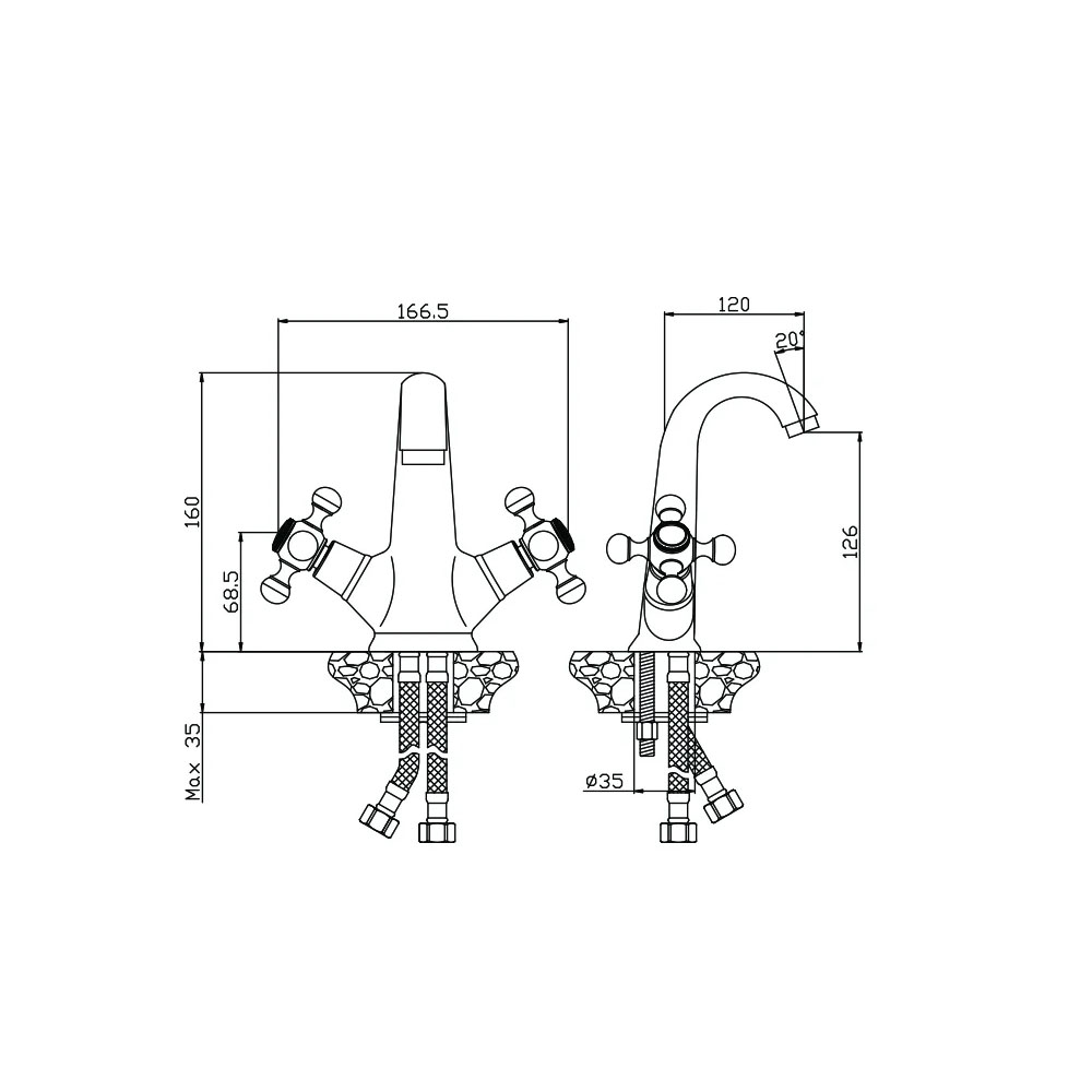 Двузахватный смеситель для раковины классического дизайна Girona с удобными маховиками. Латунный корпус из высококачественного сплава HQ Brass и двухслойное никель-хромовое покрытие Liquid Diamond — позволяют увеличить срок службы изделия до 25 лет.