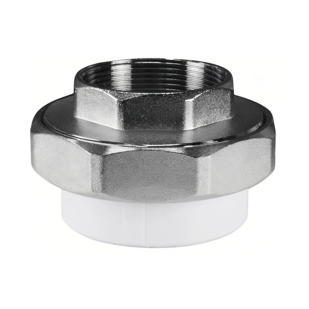 Муфта комбинированная разъемная Ø 50 х 2' ВР американка полипропилен Белая PPR Valfex - представляет собой разъемное соединение между металлической и пластиковой трубой. Закладная деталь изготовлена из латуни марки ЛС-59-1. Латунные части производятся методом горячего штампования, пластиковые - методом литья под давлением.