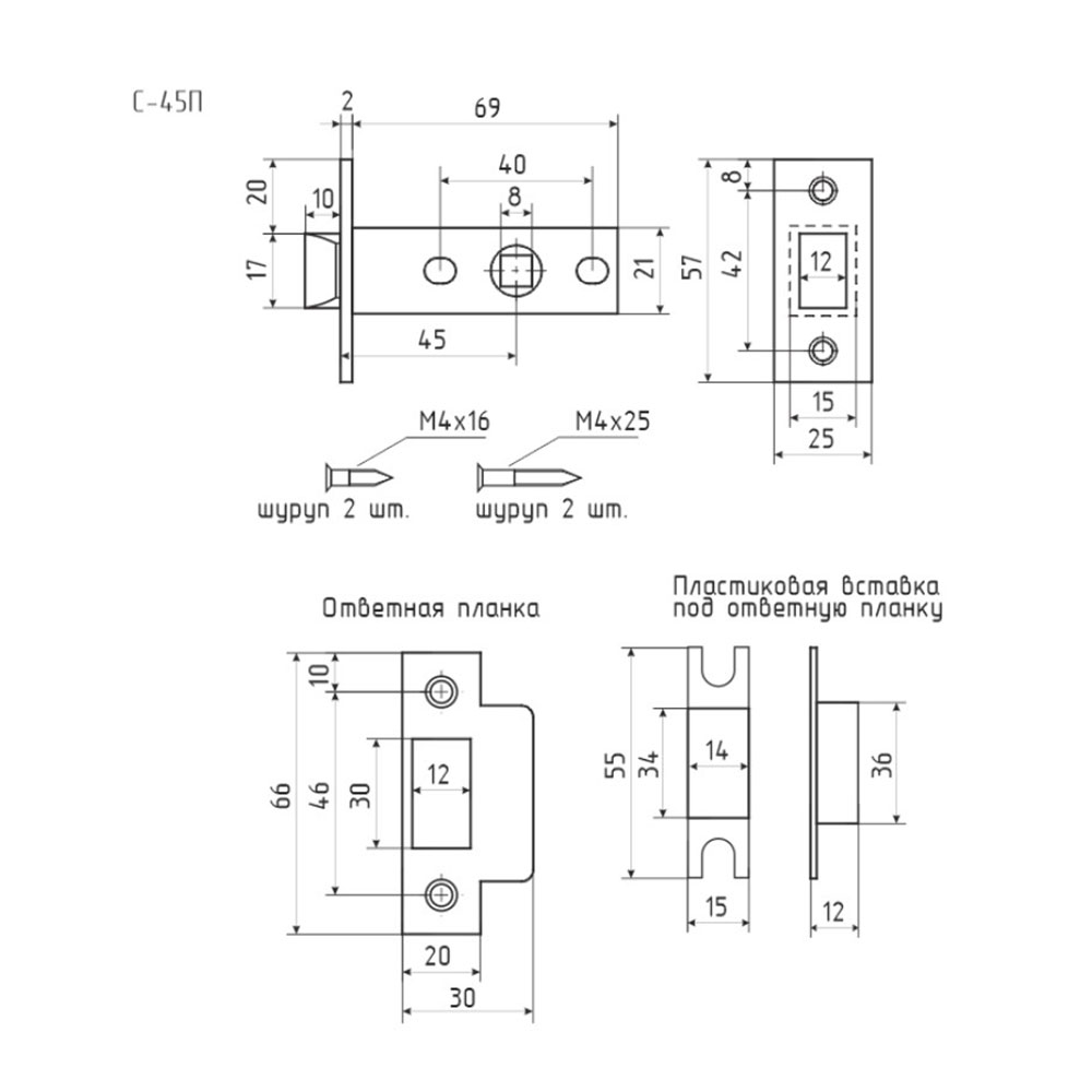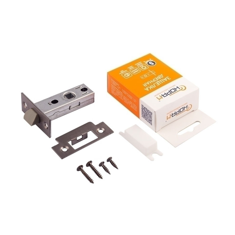 Защелка дверная язычок С-45П Графит НОРА-М - бесшумное и надёжное решение для межкомнатных деревянных дверей. Предназначена для фиксации двери в закрытом положении, обеспечивая мягкое и плавное закрывание без лишнего шума. Ударопрочный пластиковый ригель делает работу защёлки тихой и устойчивой к длительной эксплуатации. Стандартное отверстие под квадрат 8×8 мм позволяет использовать защёлку с любой раздельной ручкой на розетке, а отверстия под стяжные винты обеспечивают прочную установку.
