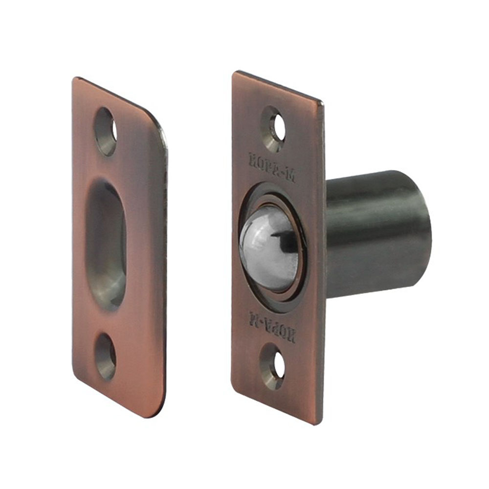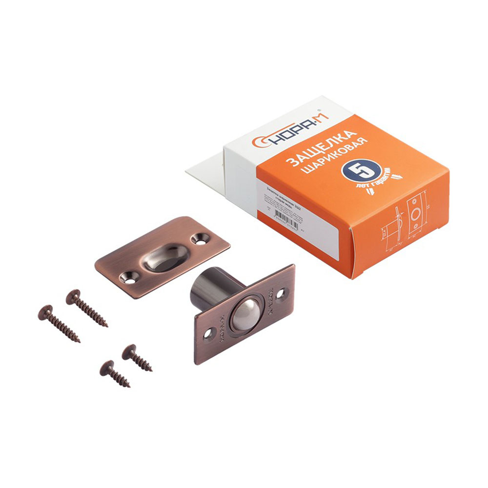 Защелка межкомнатная ЗШ2 Старая медь НОРА-М - простое и надёжное решение для лёгкого закрывания межкомнатных дверей. Модель предназначена для фиксации двери в закрытом положении без использования ручки. Ригель выполнен в форме шарика, поэтому дверь легко открывается и закрывается лёгким нажатием — удобно для помещений с высокой проходимостью или когда требуется быстрое закрывание без поворота ручки. Универсальная конструкция позволяет устанавливать фиксатор на двери левого и правого открывания толщиной от 35 мм.
