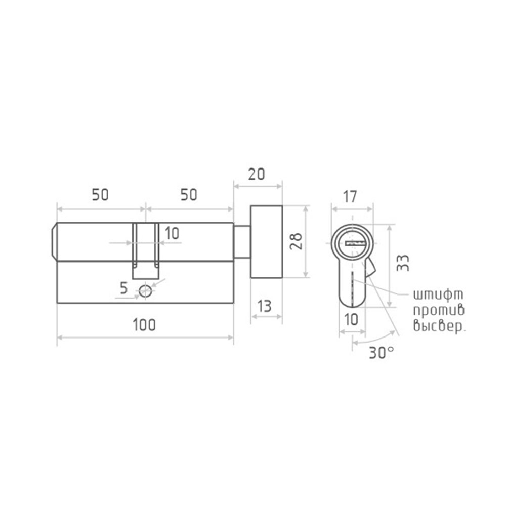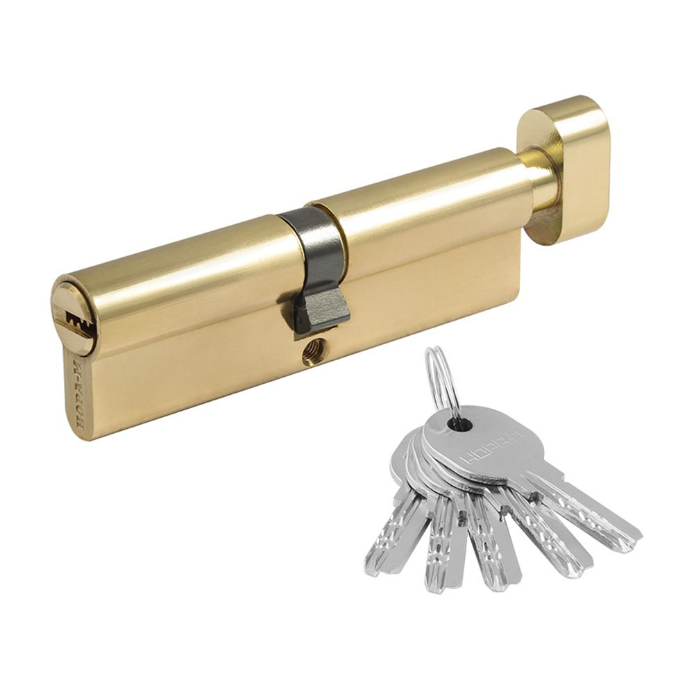 Личинка цилиндровый механизм ЛПУВ-100 50-50 Золото НОРА-М - надёжное и функциональное решение для межкомнатных и входных дверей, сочетающее высокий уровень безопасности и удобство ежедневного использования. Модель выполнена из высококачественной латуни и относится к профессиональной линейке цилиндров НОРА-М. Цилиндр оснащён 6-пиновым механизмом секрета со степенью секретности до 100 000 комбинаций и комплектуется 5 перфорированными ключами. Для защиты от силового взлома предусмотрен штифт из закалённой стали против высверливания, который значительно повышает устойчивость механизма к агрессивным методам вскрытия. Особенность данной модификации — вертушка, позволяющая запирать и отпирать дверь изнутри без использования ключа. Это особенно удобно для жилых помещений, квартир и домов, где важны комфорт и скорость доступа. Латунный корпус отличается высокой износостойкостью, устойчивостью к коррозии и стабильной геометрией. Он выдерживает механические нагрузки и перепады температур, сохраняя плавный и точный ход механизма. Ресурс работы — более 100 000 циклов, что делает цилиндр оптимальным для дверей с высокой проходимостью и объектов с повышенными требованиями к надёжности.