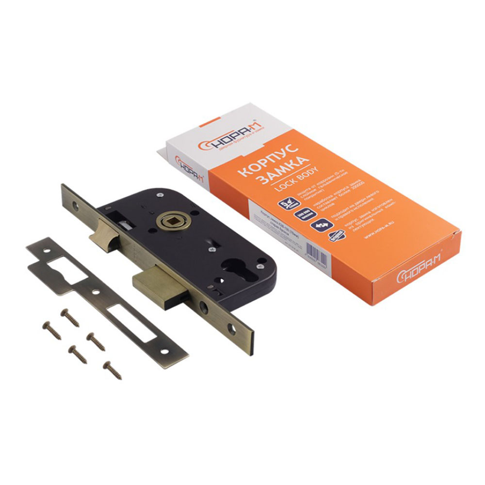 Корпус замка КЗВ-100 70 мм Старая бронза НОРА-М - надёжная основа для дверей любого типа. Предназначен для установки на деревянные входные и межкомнатные двери. Универсальная конструкция позволяет устанавливать корпус как на левые, так и на правые двери, что делает его универсальным решением для большинства дверных систем. Корпус изготовлен из высококачественной стали с порошковым покрытием, которое защищает изделие от коррозии и продлевает срок службы. Запорный механизм включает собачку и один прямоугольный ригель с нижним расположением, обеспечивая надёжное закрывание и мягкий ход ручки. Лицевая и ответная планки имеют гальваническое покрытие, защищающее металл от влаги, царапин и потускнения. Выпускаются в нескольких вариантах отделки: хром, матовый никель, полированная латунь, черный и старая бронза, что позволяет подобрать цвет под любой стиль фурнитуры.