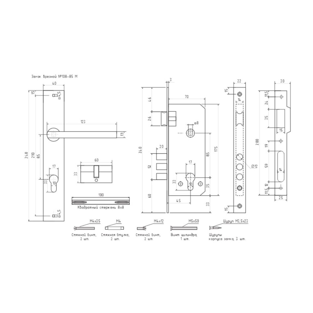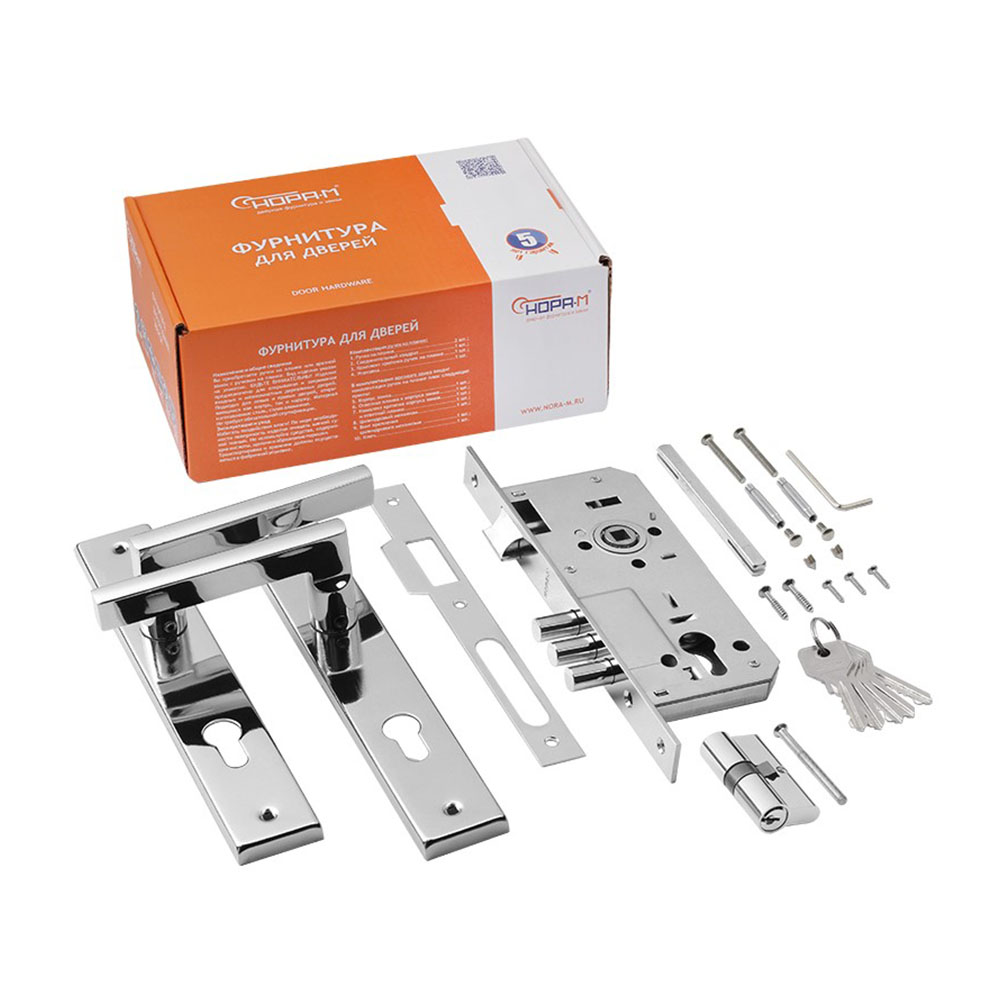 Замок врезной № 108-85 М Хром НОРА-М - предназначен для установки на межкомнатные и входные двери. Имеет межосевое расстояние 85 мм. Подробные посадочные размеры всех комплектующих смотрите на схеме. Замок универсальный, может быть установлен на левые и правые двери. Для смены ориентации с левого на правый и наоборот необходимо перевернуть защелку корпуса замка на 180 градусов (подробнее смотрите в инструкции).