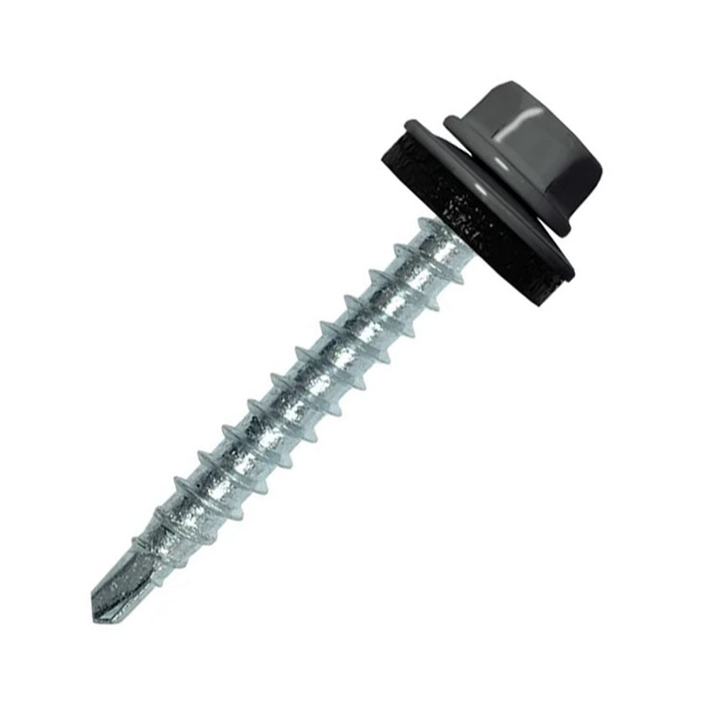 Кровельный саморез 4,8х35 мм RAL7024 Тёмно-серый - применяются для крепления металлочерепицы к деревянным и металлическим кровельным конструкциям. Изготовлены из оцинкованной стали. Наконечник - сверло. Саморез комплектуется шайбой и резиновой прокладкой EPDM. Головка шестигранная с буртом.