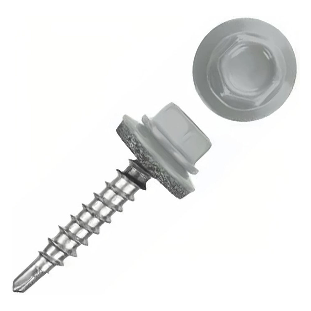 Кровельный саморез 4,8х35 мм RAL7004 Светло-серый - применяются для крепления металлочерепицы к деревянным и металлическим кровельным конструкциям. Изготовлены из оцинкованной стали. Наконечник - сверло. Саморез комплектуется шайбой и резиновой прокладкой EPDM. Головка шестигранная с буртом.