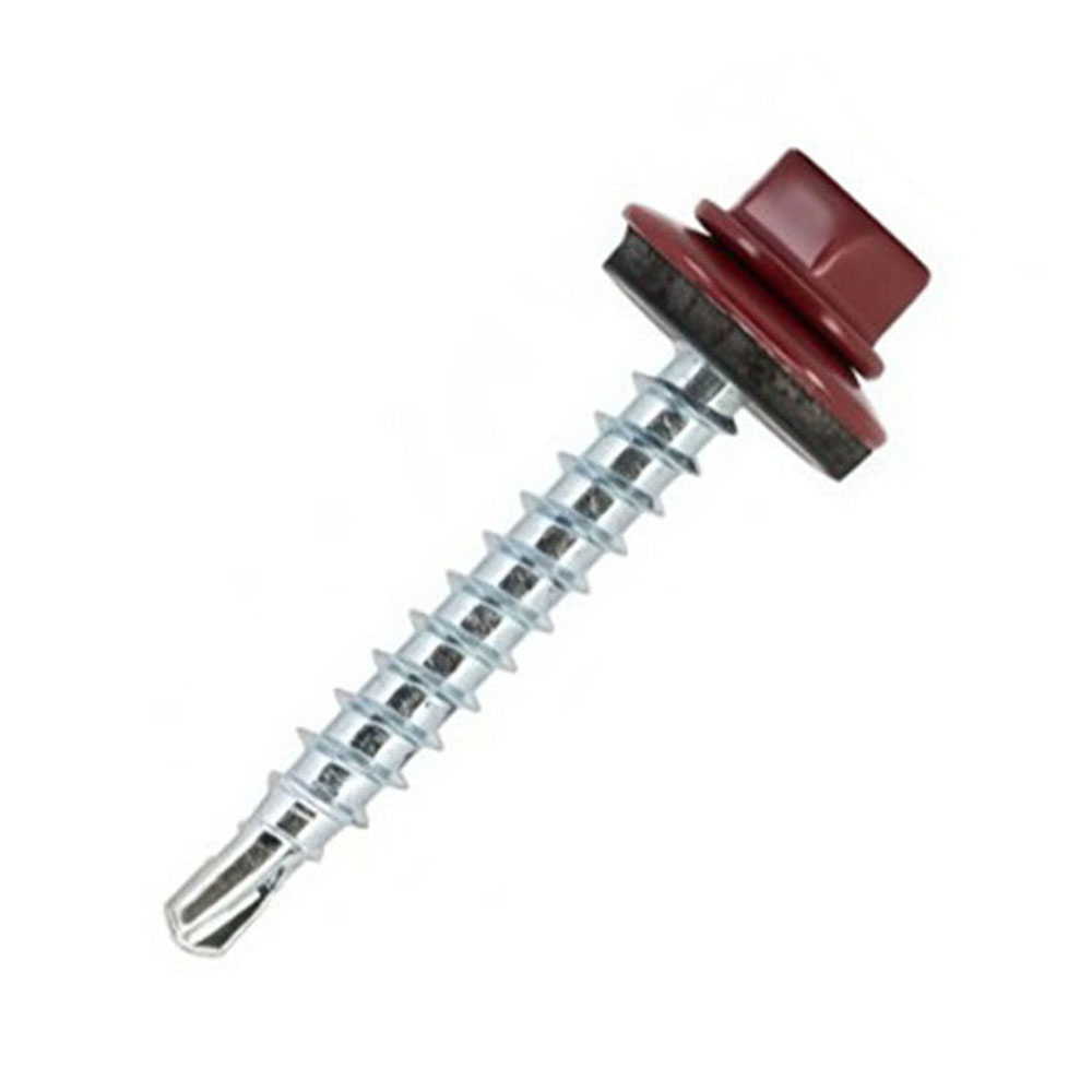 Саморез кровельный 4.8х35 мм Ral 3005 Бордовый - применяются для крепления металлочерепицы к деревянным и металлическим кровельным конструкциям. Изготовлены из оцинкованной стали. Наконечник - сверло. Саморез комплектуется шайбой и резиновой прокладкой EPDM. Головка шестигранная с буртом.
