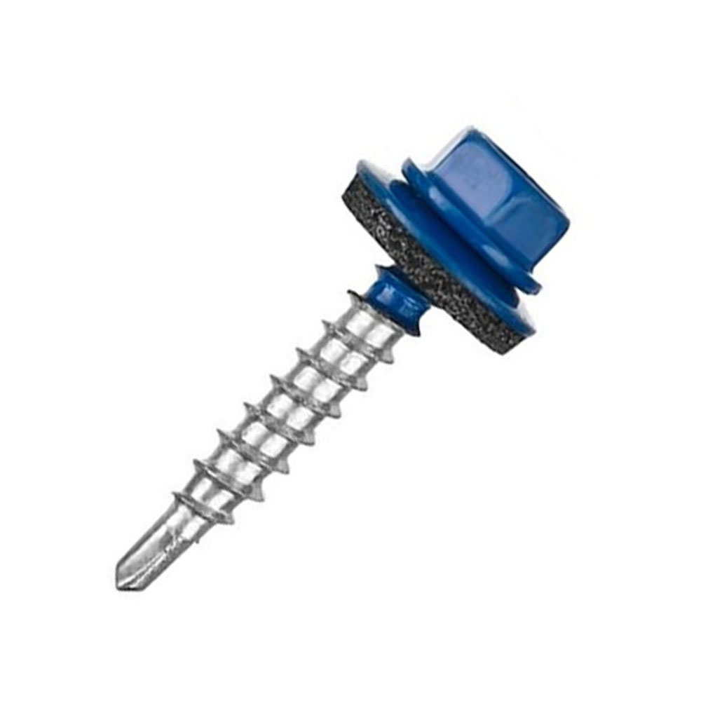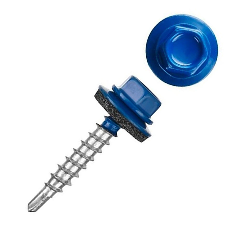 Саморез кровельный 5.5х19 мм Ral 5005 Синий - применяются для крепления металлочерепицы к деревянным и металлическим кровельным конструкциям. Изготовлены из оцинкованной стали. Наконечник - сверло. Саморез комплектуется шайбой и резиновой прокладкой EPDM. Головка шестигранная с буртом.