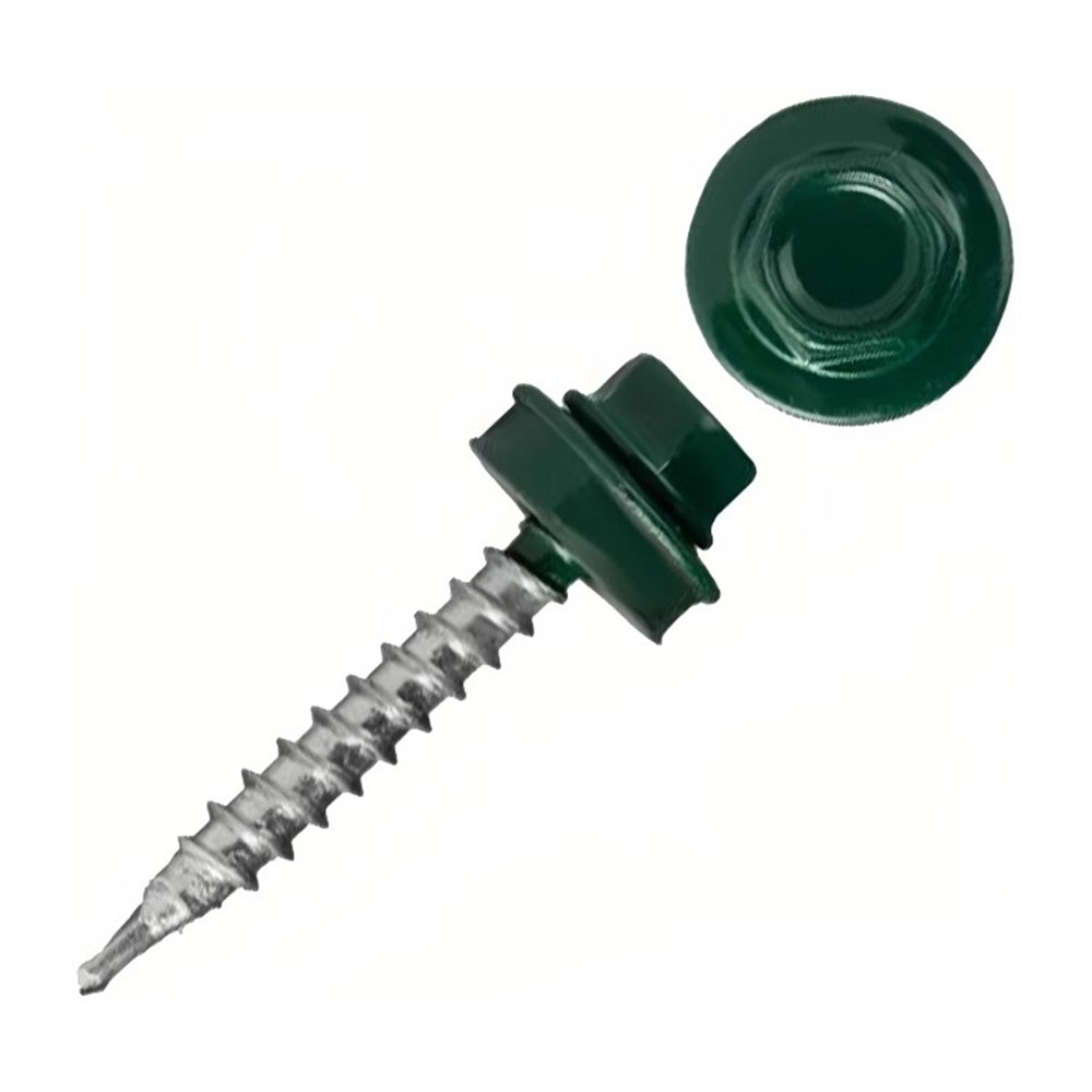 Саморез кровельный 5.5х19 мм Ral 6005 Зеленый - применяются для крепления металлочерепицы к деревянным и металлическим кровельным конструкциям. Изготовлены из оцинкованной стали. Наконечник - сверло. Саморез комплектуется шайбой и резиновой прокладкой EPDM. Головка шестигранная с буртом.