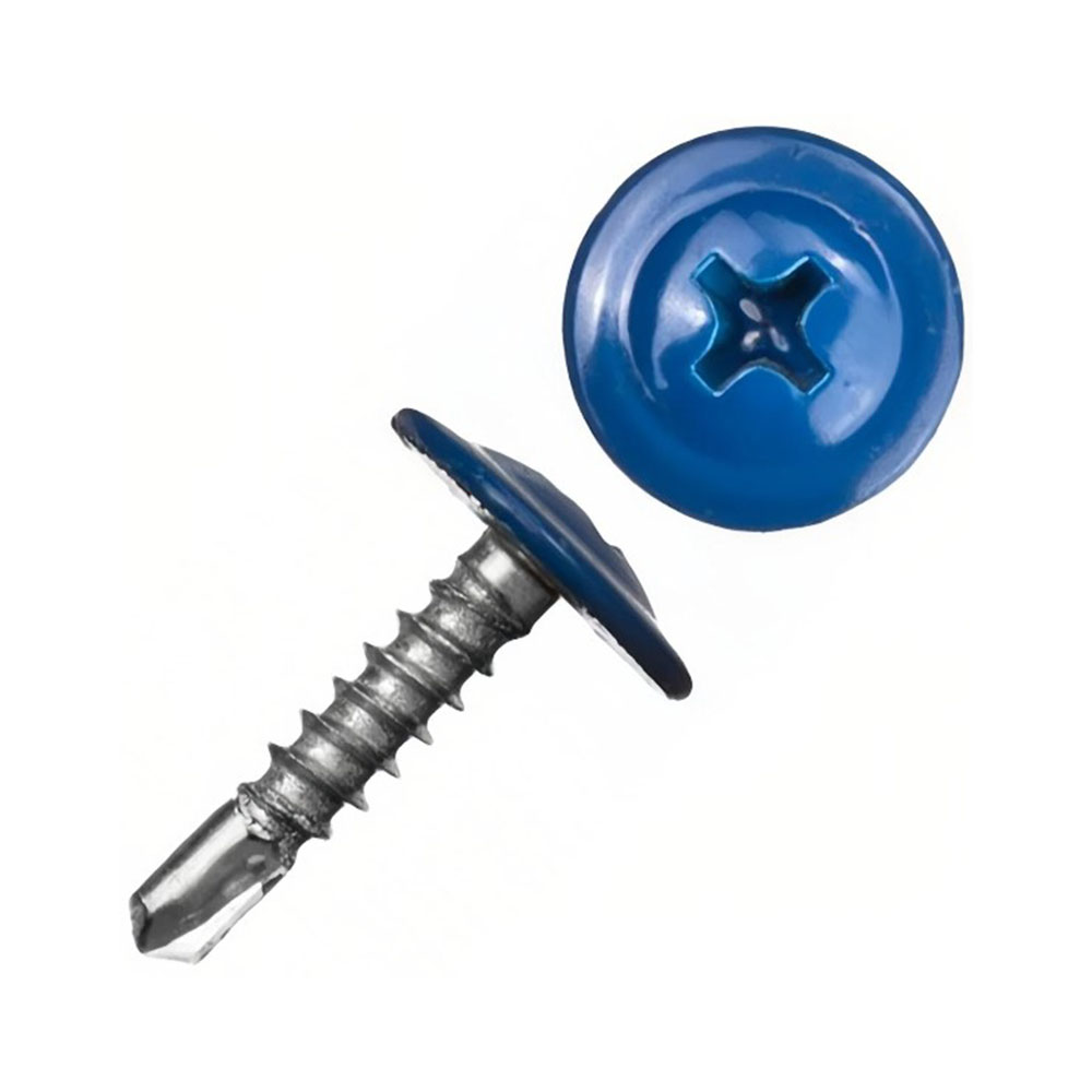 Саморез с пресс-шайбой 4.2х19 мм сверло RAL5005 Синий - размеры делают этот саморез универсальным крепежным элементом, подходящим для соединения тонких металлических листов, пластика и других материалов. Наличие сверла на конце самореза значительно упрощает и ускоряет процесс монтажа, избавляя от необходимости предварительного сверления отверстия. Это особенно ценно при работе с хрупкими материалами, где предварительное сверление может привести к сколам и трещинам.