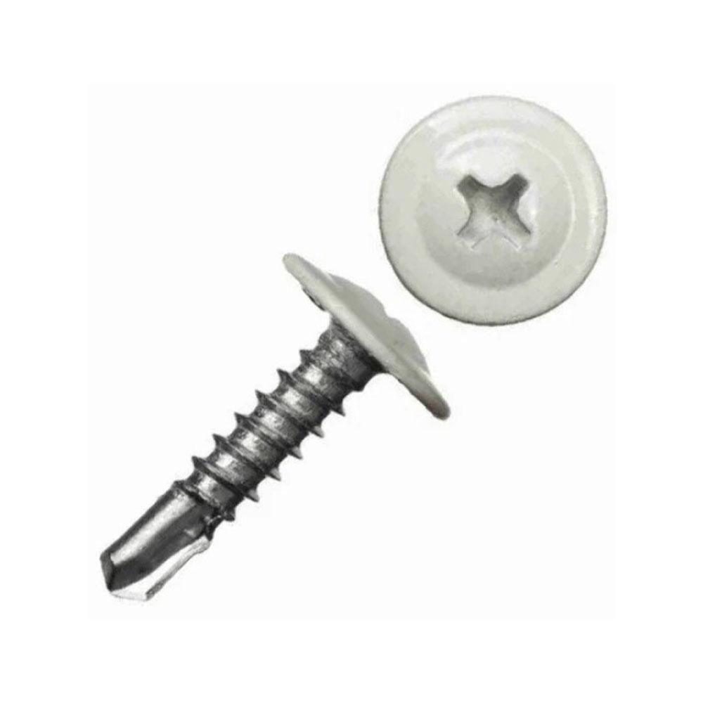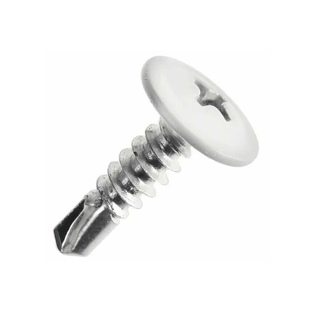 Саморез с пресс-шайбой 4.2х19 мм сверло RAL9003 Белый - размеры делают этот саморез универсальным крепежным элементом, подходящим для соединения тонких металлических листов, пластика и других материалов. Наличие сверла на конце самореза значительно упрощает и ускоряет процесс монтажа, избавляя от необходимости предварительного сверления отверстия. Это особенно ценно при работе с хрупкими материалами, где предварительное сверление может привести к сколам и трещинам.