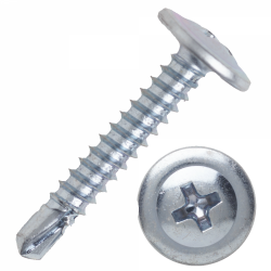 Саморез с прессшайбой 4.2х57 мм сверло, применяется для крепления металлических и прочих листовых материалов (фанера, оргалит и т.д.) к деревянным несущим конструкциям. Материалы: изготавливаются из стали, поверхность оцинкована. Особенности конструкции: головка выполнена ввиде полусферы с прессшайбой или конуса и имеет крестообразный шлиц Ph №2. Наконечник самореза острый (для деревянных поверхностей). За счет прессшайбы осуществляется эффективное прижимание листовых материалов. Монтаж: предварительно накернить место крепления, при необходимости просверлить. Саморез закрутить с помощью отвертки или специальной насадки на дрель с крестообразным шлицем Ph №2.