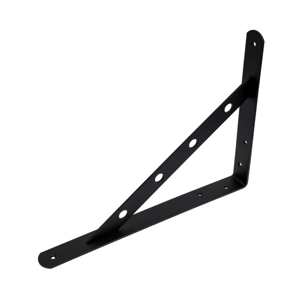 Кронштейн 300х225 мм Черный отлично подойдёт для того, чтобы самостоятельно сделать полку. Сравнительно лёгкий, прочный и жёсткий, он обеспечит отличные условия для установки на полку декоративной вазы, подсвечника или книг.