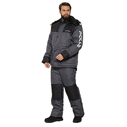 Huntsman Костюм зимний Полюс цвет Серо-черный размер 52-54/170-176, для рыбалки и отдыха. Самый оптимальный вариант для желающих сэкономить, так как костюм имеет низкую цену из всей линейки зимней одежды. Ткань костюма не продувается ветром, не промокает под сильным дождем.