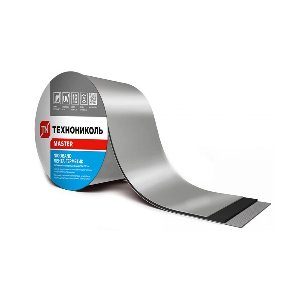 Лента-герметик ТЕХНОНИКОЛЬ NICOBAND 75 мм 10 м Серебристая - удобный способ герметизации различных трещин и стыков. Применяется также для изоляции примыканий, ремонта кровельных покрытий крыш и водосточных систем. Специальная УФ защита ленты-герметика увеличивает срок ее эксплуатации вне помещений, а ассортимент цветовых решений подойдет под любую кровлю.