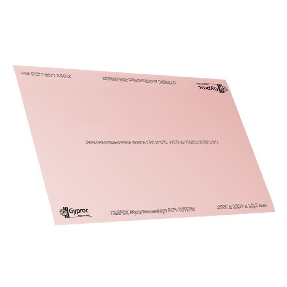 Гипсокартон Огне-влагостойкий 12,5х2000х1200 Гипрок Мультикомфорт ГКЛ ОВ - представляет собой плиту из гипсового сердечника, с двух сторон армированного специальным картоном. Сердечник имеет повышенную плотность, специальные добавки и особую структуру гипса, входящего в его состав, что обеспечивает наилучшее сочетание его характеристик. Материал не содержит вредных для здоровья веществ, состоит из полностью перерабатываемых материалов, безопасен для человека и окружающей среды. Применяется для звукоизоляционных конструкций перегородок, потолков, облицовок в помещениях с сухим, нормальным и влажным влажностными режимами, помещения с повышенными требованиями к огнестойкости, прочности, твердости лицевой поверхности и требованиями к обшивке не менее КМ1.