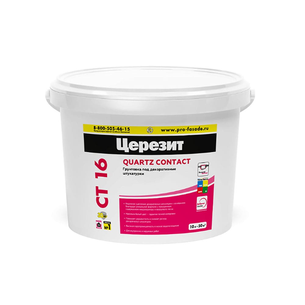 Водно-дисперсионная грунтовка Ceresit CT 16 для подготовки оснований под нанесение декоративных штукатурок.