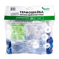Термошайба состоит из поликарбонатной шайбы, уплотнительной прокладки и защелкивающейся крышки. Саморезы докупаются отдельно.